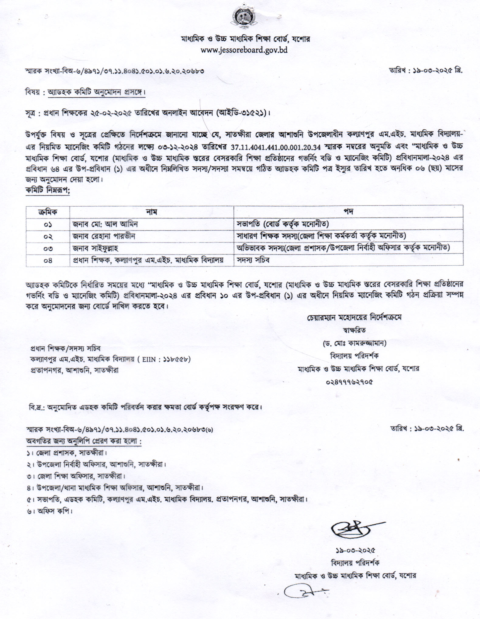 • যশোর বোর্ড থেকে পাঠদানের অনুমতি ও স্বীকৃতি প্রদান করা হয়েছে। এখানে সর্বশেষ স্বীকৃতি নবায়নের কপি আপলোড করা হয়েছে।